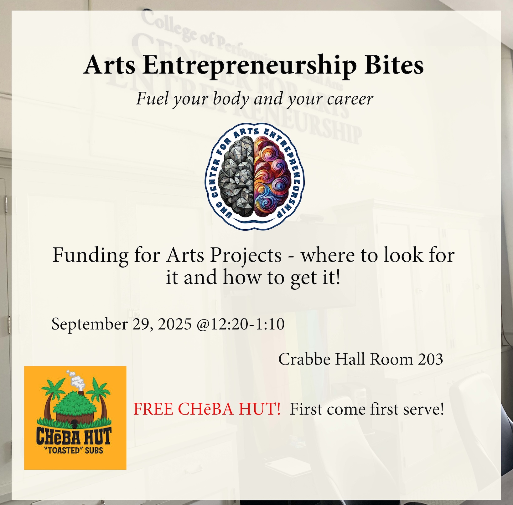 Fuel your body and your career! Join fellow performing and visual arts students for Arts Entrepreneurship Bites—a dynamic mix of lunchtime talks, creative roundtables and real-world advice from artists and innovators who’ve turned their passion into profession. Whether you’re dreaming up your next big project or figuring out how to fund it, these sessions offer practical tools, fresh perspectives and plenty of inspiration (plus food!).